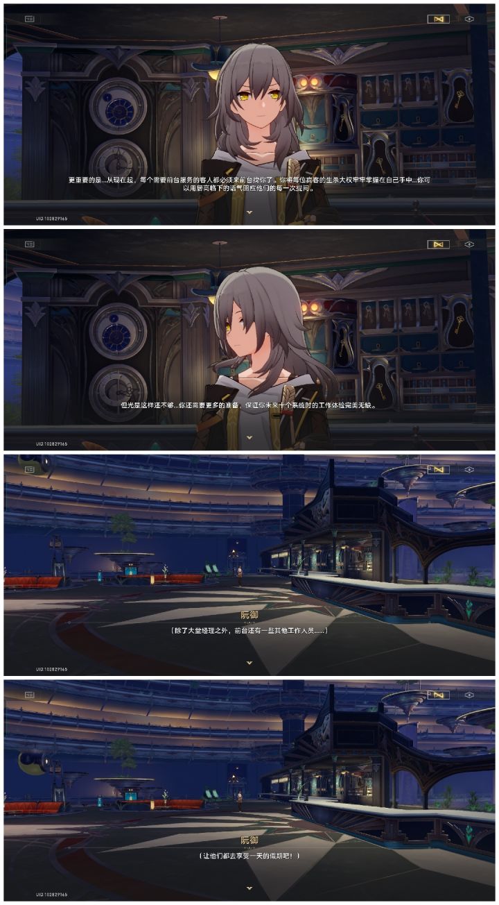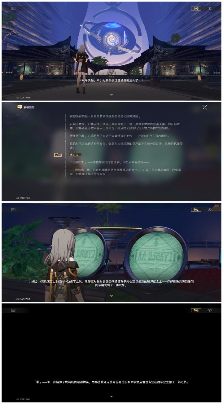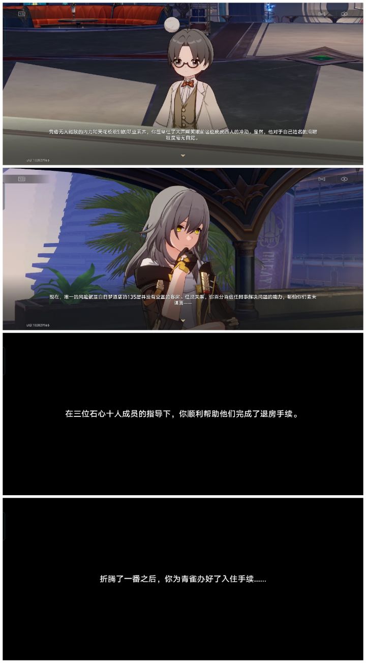 为了给自己找事做,勇于担当“大堂经理”!为了体现自己,给员工放假,为了给酒店管理专业的大学生就业问题出口气,而踹掉了酒店自动服务端的电源等!画风逐渐开始不对劲,成熟稳重渐行渐远……在营救青雀那里,为了不引人注目用高科技换了个形象,而后和青雀无效交涉一番后,游戏方竟然主动坦白了没设计动画这个事实,真的是捉襟见肘啊,令人忍俊不禁以及在找炸弹的时候和娃娃的对话,还有主角越来越多的心理