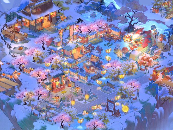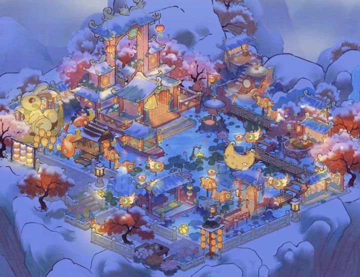 #春节限定ssr建筑 晚上的灯光非常有氛围感,但是用晚上参赛不好拿票,好纠结~(>_<)~