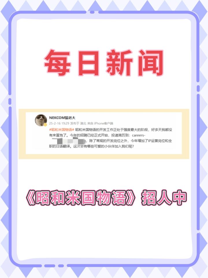 猫老大发博招人❓游戏缝合美日80年代的文化背景,年内上线,速来应聘!💥 #今天游戏圈发生了啥 #资讯评论员 #昭和米国物语 #steam