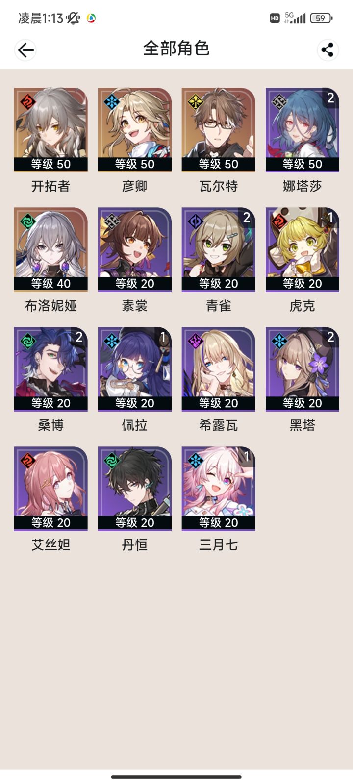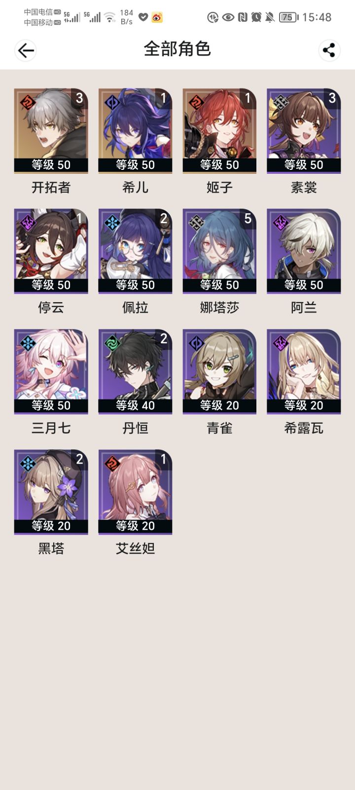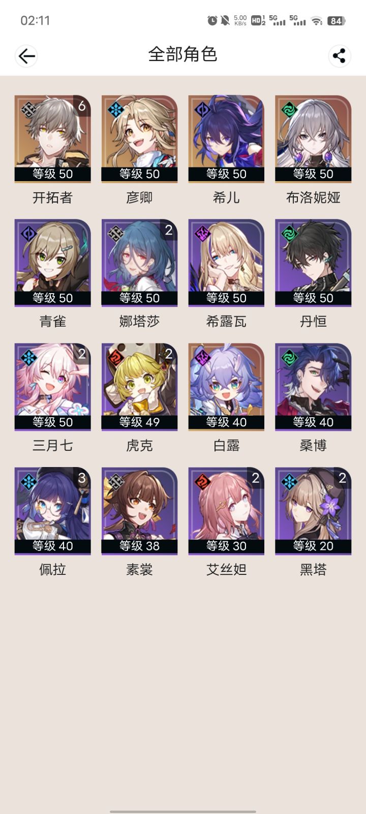 80强娶希儿加个白露奶妈哟西 不错 差个杰哥我就能嘿嘿嘿了(目前肝度拉满35级出四个黄 不错 零氪 我快乐了)#晒晒你的星穹开拓记录