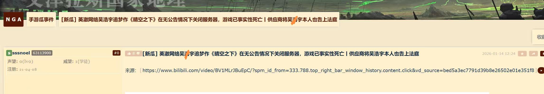 英澈网络旗下二次元战棋手游《晴空之下》突发关服事件,未发布任何官方公告便正式关闭官服,这款被视作老板吴浩宇“富二代逐梦作”的游戏,上线仅半年便宣告事实性死亡。游戏于2025年7月14日正式公测,曾凭借高质量宣传PV收获不少关注,却在2026年1月14日迎来猝不及防的关服,完整运营周期恰好半年。关服前早已显露运营异常,游戏长期处于停更状态,B站官方账号动态已超过一个月未更新,限定卡池下架、活动功能