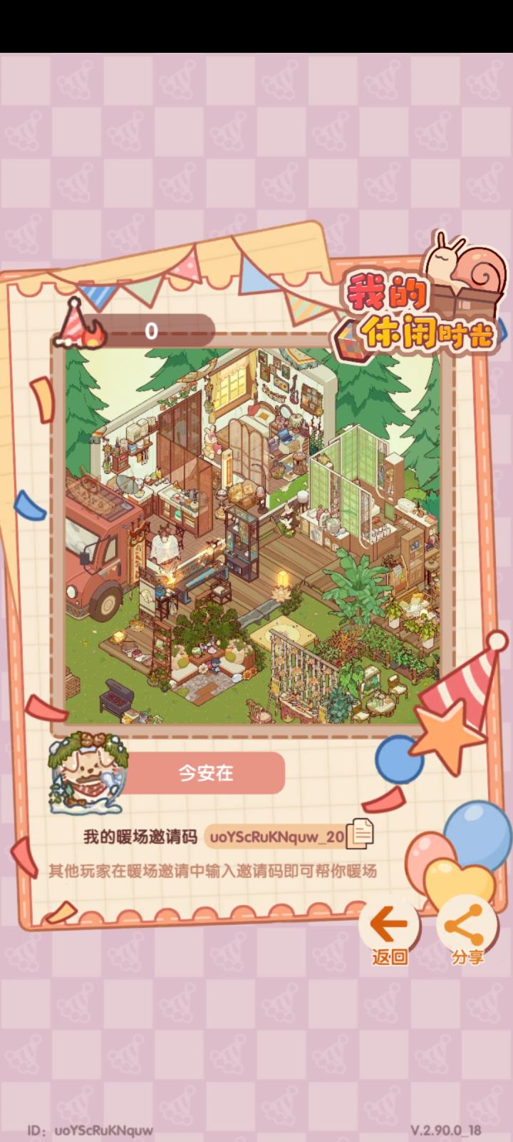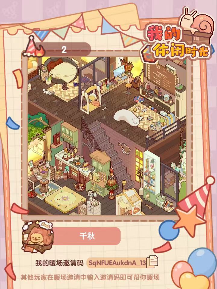 要不要来我的小屋party?欢迎欢迎!派对码:TBkhHxOBcdGn_15#我的休闲时光 #我的休闲时光蜗居物语 #游戏日常 #我的休闲时光派对暖场 #暖场 #我的休闲时光装修