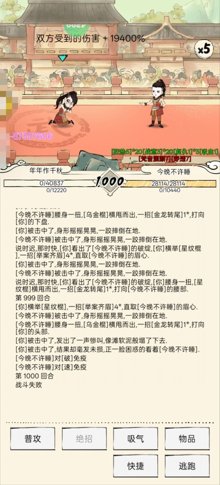 天机火三的红芒里,八卦的轮转总差最后一块盾。50%的血线像道脆弱的界碑,素心双剑每一次交击,都是轰然倒塌的预兆。 十几次重开,反击的余威撑得过初回合,却接不住第二道剑影的锋芒。指尖悬在重开键上时,忽想起素心的克星——那门被雪藏的蛤蟆功。 当蛙鸣替代了剑势,克制链在此刻逆转。11回合的僵持后,BOSS的剑终于垂落。零氪的战绩停在159万,是绝境里翻出的最优解。青蛙🐸太强了,建议列为9w内,