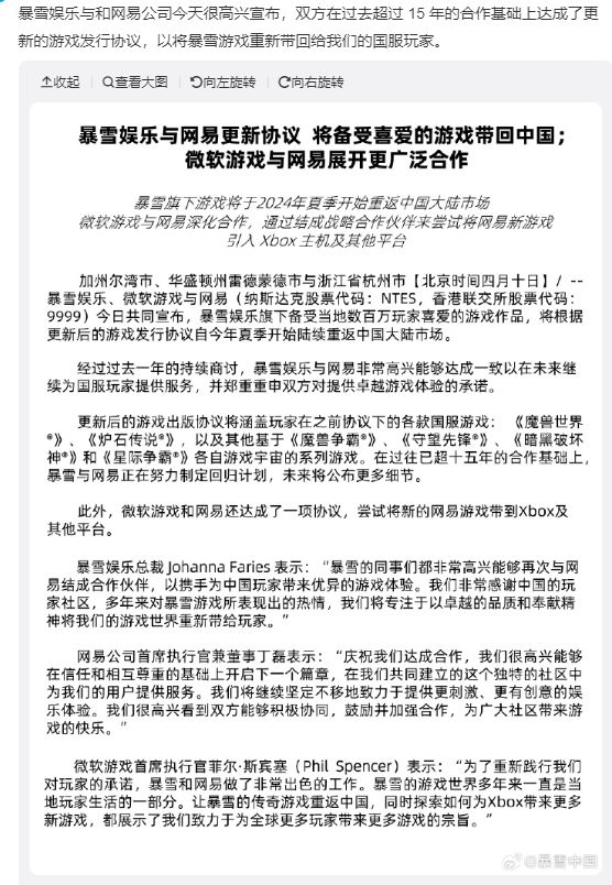 特大新闻网易暴雪竟然冰释前嫌复婚了