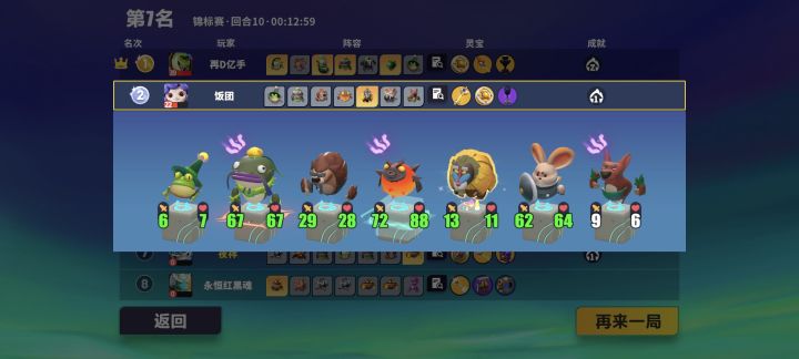 不想让玩家刷金币印记可以把锦标赛关了而不是搞机器人恶心大伙 你告诉我10回合的62-64的鼠鼠是怎么弄的?而且这人第六回合的阵容有个33-32的密林四星狐狸还有33-30的三星战吼虫子 第十回合就成这样了?你但凡换成犬神我都理解 这个喜羊羊是怎么做到的?#游戏策划#曝光