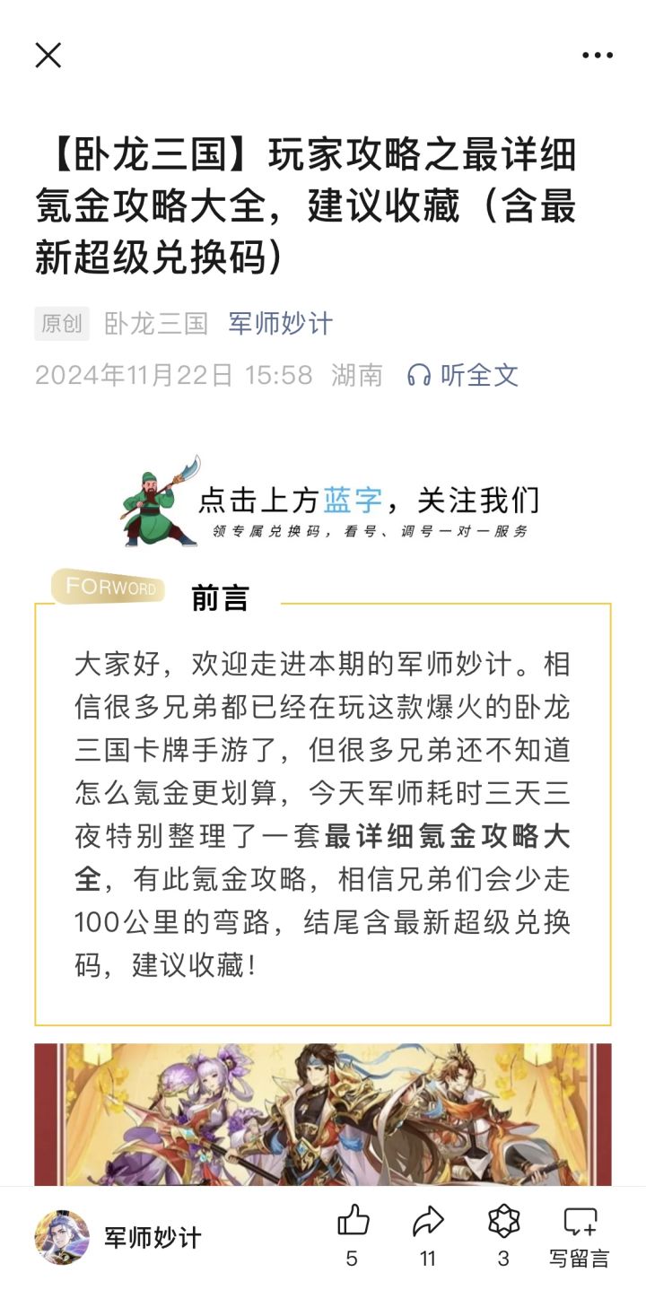 #发现好游戏 #三国卡牌手游 #卧龙三国 #最全兑换码 #游戏攻略