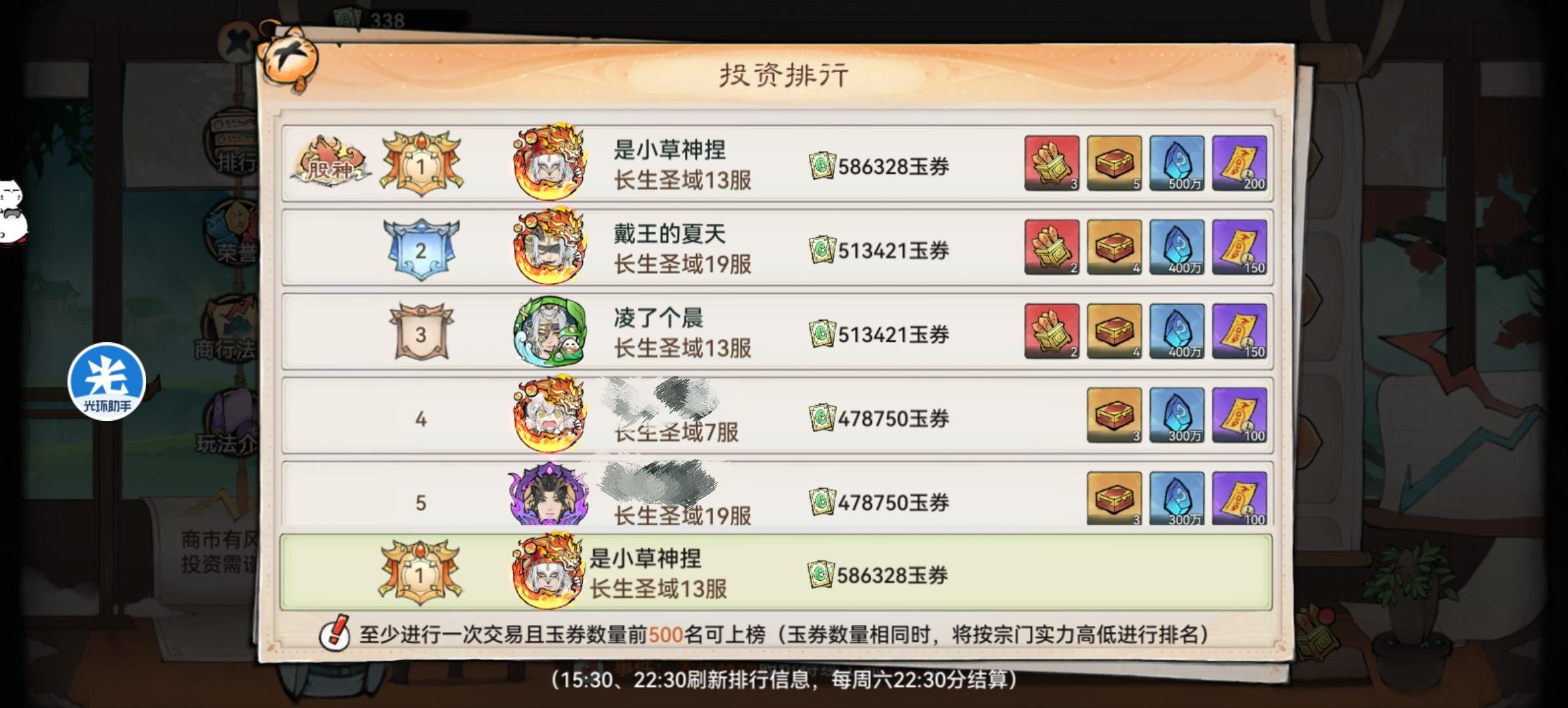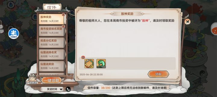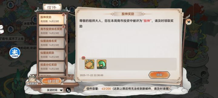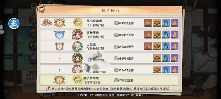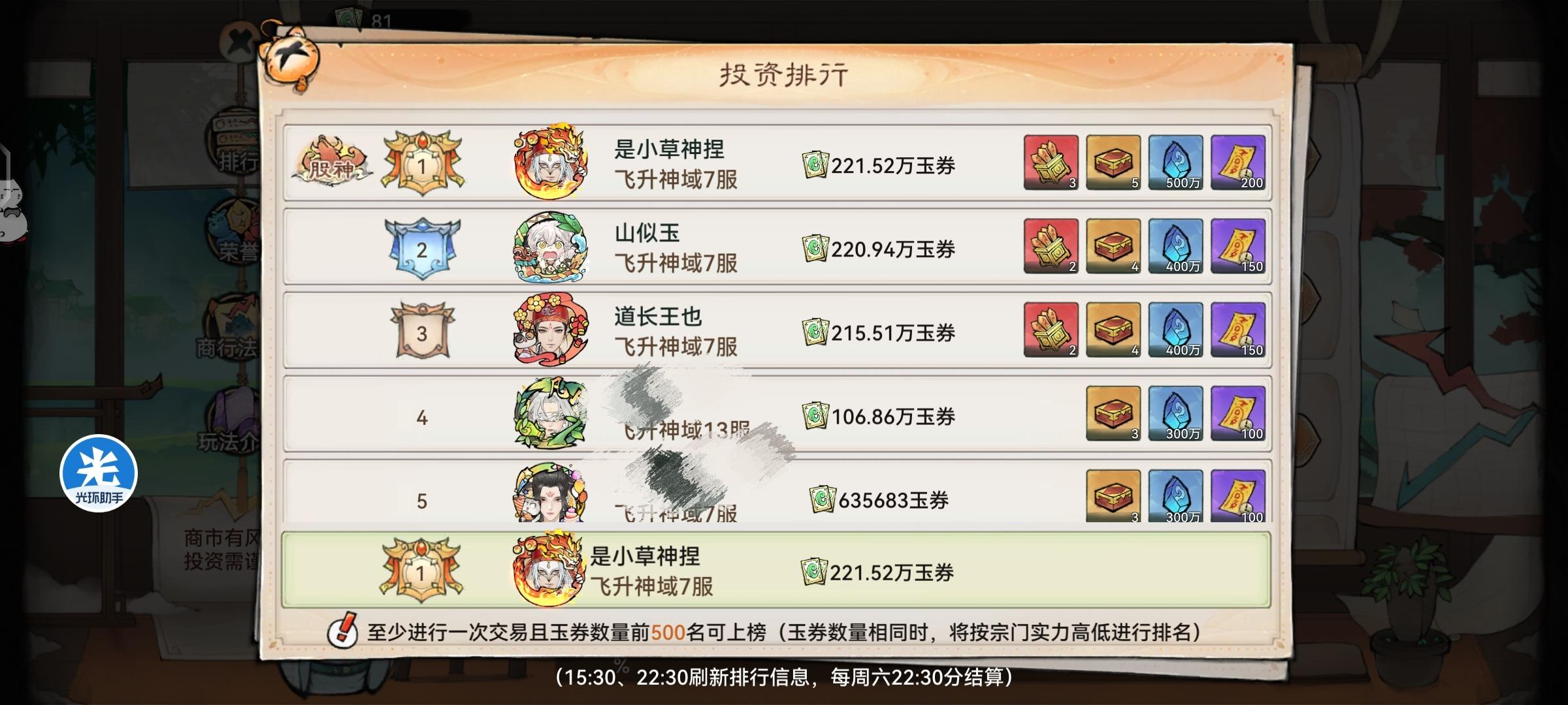 其实商市并没有大家想象的要很多操作,随便找一份攻略把事件图片保存下来,事件刷新的时候看一看涨就买,跌就卖,就算后面懒得操作,买田也会比只买田的排名高,运气好股神也不是没有可能我这里这周没有人操作,所以用了几个事件签就没怎么操作了,打工人事件签自己算一下时间,推荐中午那段时间用,如果晚上不上班更好了,最好安排闹钟以防忘记#最强祖师 #是小草神捏 #最强祖师商市