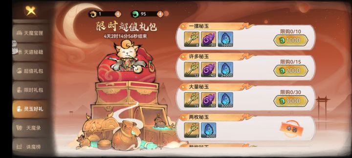 首先玩法你游玩法更新,都这么多一起吗?前几天还在说没东西玩了。结果你这一个更新给我整不会了。今天一上号就在点点点,点不动了快。1:最重要的山海世界(地图挺大的,奖励也是好的不行)2:仙盟新玩法(直接捐了我五百万灵石)3:我个人最喜欢的这个倒卖活动,我开局直接血亏20%,已经降了,还降太真实了。4:宗门大更新(之前只能偷一些没用的功法)现在能获得的东西变多了,甚至绝大部分宗门都有一本橙