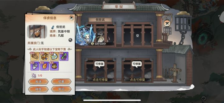 宗门2.0:1:外出游历弟子先招募会给你送资源,招募失败再抓进牢狱,招募成功先看储物袋再驱逐2:宗门声望优先剑宗拿满好感的功法牢狱:1:先审问,给资源 建议先看资质.2:招募,成功之后看储物袋万一有好的呢尬笑,然后驱逐 除非资质很好的留下但是就要90天思绪3:千万不要释放会降低宗门好感!如果非要释放建议宗门好感度起来再说4:招募失败推荐放逐虚空炒股这玩意不和现实中一