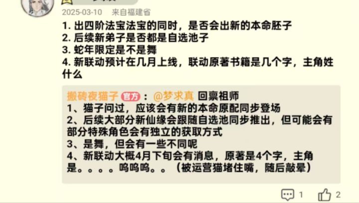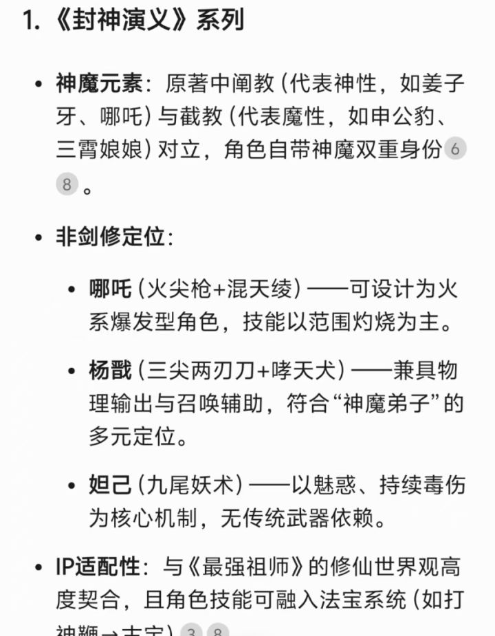 首先来捋一捋目前所得的消息,1.耳熟能详的大IP2.非剑修职业3.西游山海世界框架4.一男二女5.原著书名4字6.中国古代神仙角色7.一点神魔元素又捋了捋近期的信息,不知道为什么一切都指向了封神演义,四阶法宝是4月份出魔界,以及爆料的神魔属性的弟子,而4级法宝产出就是魔界由仙盟进行探索,所谓的神魔对抗,而封神演义就是含有丰富的法宝系统,就是这个IP谈不上联动,不知道官方会怎样处理。