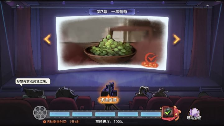 第7幕:一串葡萄弟子们继续查看至尊宝的回忆,却发现下一处重要的回忆是一串葡萄。韩飞羽:为什么你重要的回忆是一串葡萄?至尊宝:我不知道啊,难道是因为它特别好吃?西门宇:怎么可能因为好吃就变成重要的回忆啊。至尊宝:我想起来了!那不是葡萄,是菩提!西门宇:什么菩提葡萄的,这是在玩谐音梗吗?至尊宝:糟糕,怎么这么关键的事情我想不起来了?林清瑶:可能是你脑子不太够用吧……至尊宝:嘿,我告你