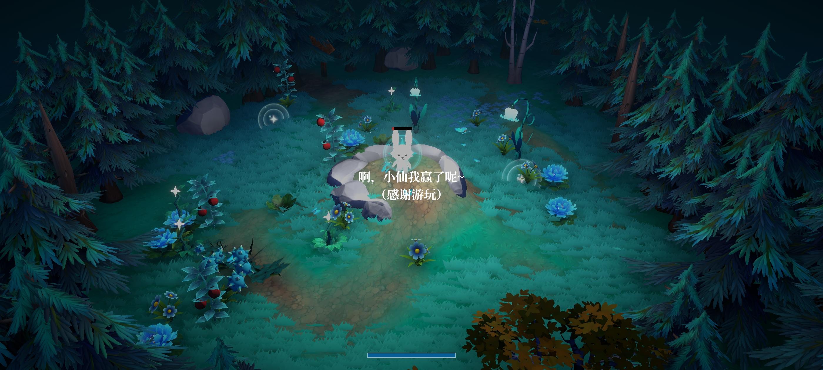 游玩体验:游戏的玩法具有很强的发掘性,植物具有不同的特殊效果,但同类型植物有的似乎仅仅是装饰作用,类似车前草的样子。①蓝色小花:显而易见的蓝色花朵,为月兔提供少量月光回复(刚开始的两朵就是,细看有蝴蝶飞向月兔)②垂铃百合:为主角提供大量月光回复,是游戏能够继续推进的关键。③星:发射快速攻击的星星,出现概率较低。④蓝色妖姬:类似大炮的大范围攻击,伤害高,攻速较慢,出现概率极大。⑤红果小树: