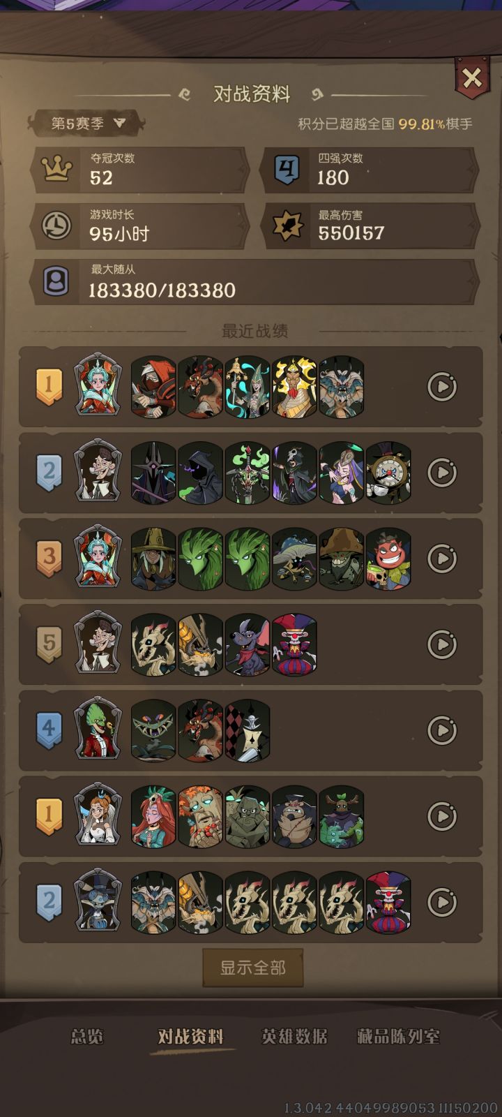 前言:卡组推荐都是建立在确认可以通关最高难度的情况下推荐,推荐都以求稳为主,花活较少。除了核心牌外,其他随从按理来说都可以更换,可以按照自己的运气和节奏调整。不需要强行照抄卡组,一切以通关为最高目标。话不多说,让我们进入正题优势:可搭配牌组不固定,没有养成大哥的需求,攻击次数又多又猛,通关赏心悦目。劣势:需要依靠很多装备牌,随机性略强,需要一定运气。主力核心在六星,需要玩家运营能力快速升级。遗
