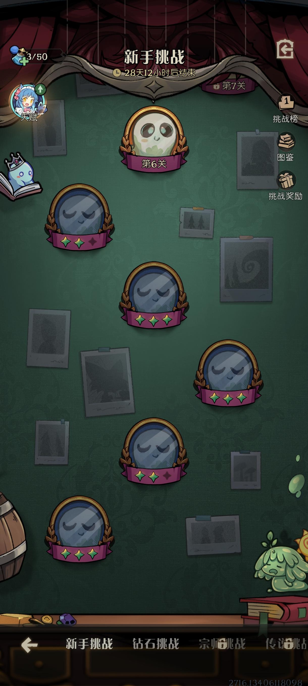 分享一个一命不氪金全三星新手和钻石的思路,无脑选第一个活动人物,技能大概是能蜕变两次的(不管有没有野兽,有野兽就玩野兽。)然后速升三本前期有金和金(这里推荐一星点金后蜕变金色随从),没金就随便拿个种族变,变到想要的就留下(这里推荐幽灵和自然),幽灵变僵尸新娘,通灵师这些,变出共鸣者也可以走击杀流。自然变自伤体系牌,这样前期有身材后期也好过渡。 技能的话我就点了不耗费体力的前两行,目前是打到了97