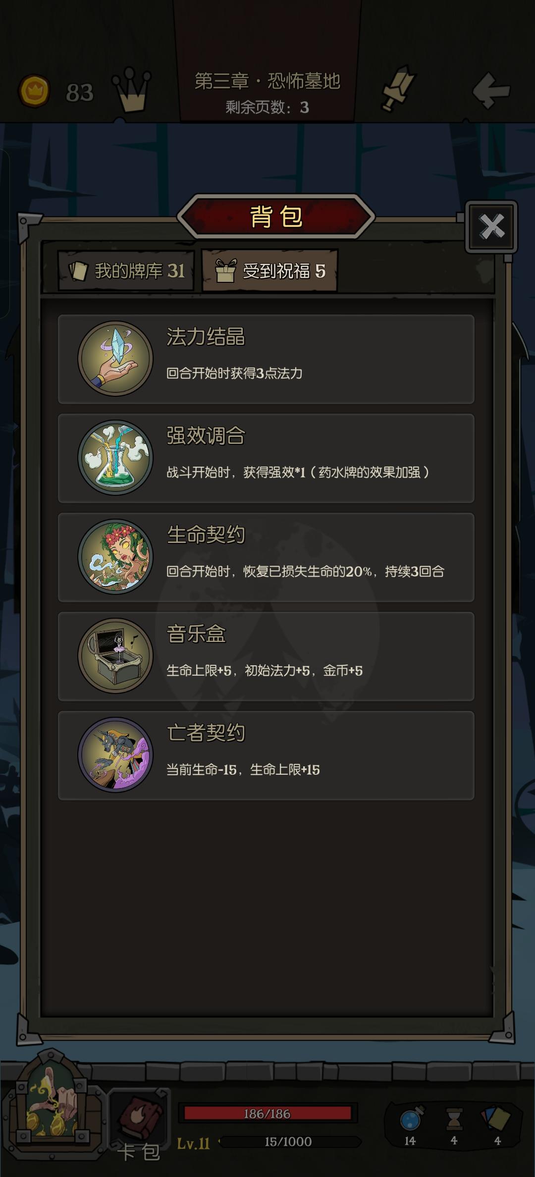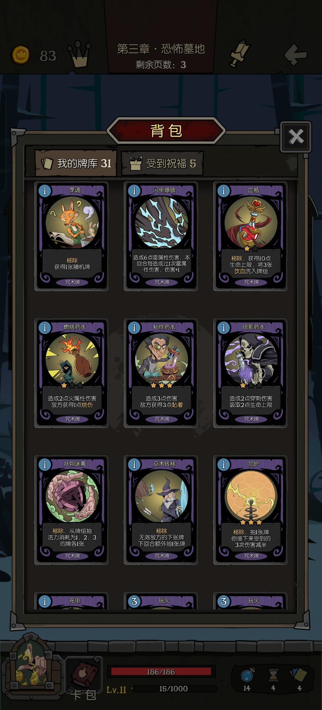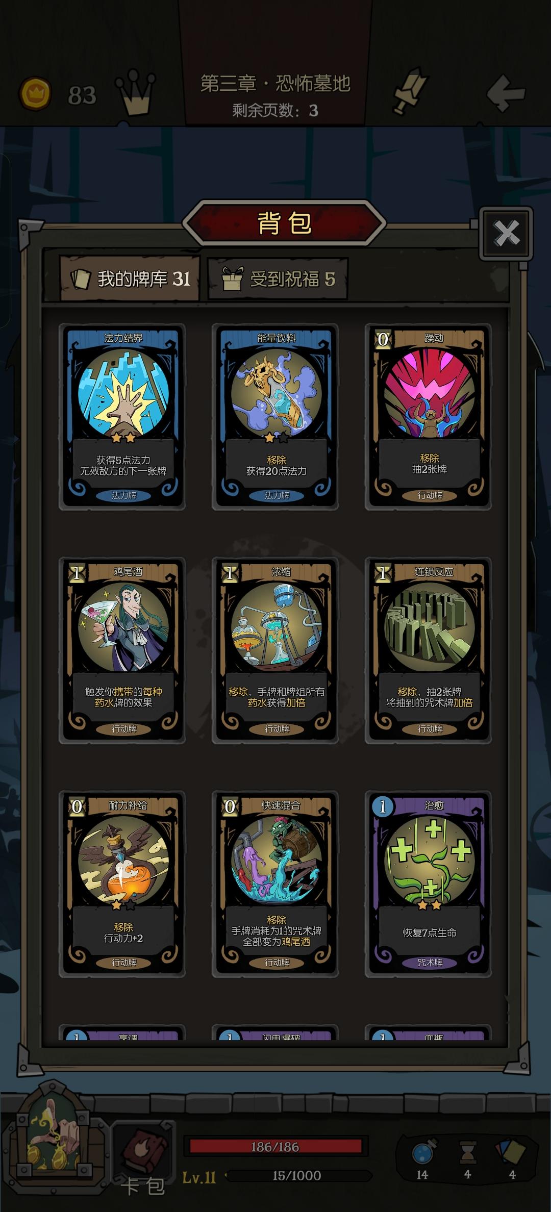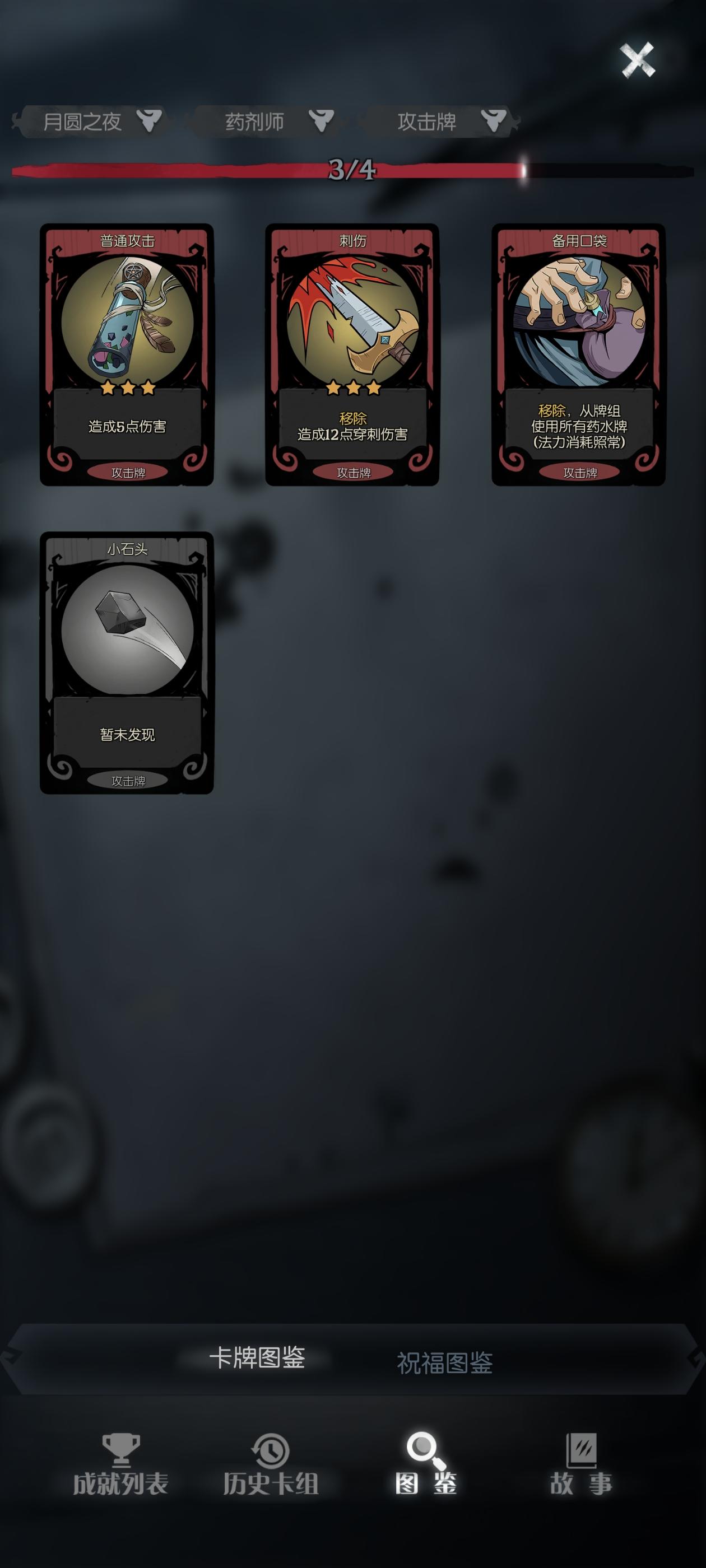 #月圆之夜 #月圆之夜药剂师 #月圆之夜极简卡组 众所周知,月圆之夜的药剂师不像其他DLC 里有删牌的忘忧酒馆,取而代之的是能删牌的主动技能“点金”。 这个主动技能一般情况下玩没有任何问题,但是对于追求极简卡组的我来说就有点难受,玩了几局发现每次选牌都得纠结要不要拿,然后看着每个章节结束的时候剩一大堆金币无语,体验感没有玩其他DLC那么顺畅快乐。以图中这局暗药流为例,我通过提前窥牌尽量避免多