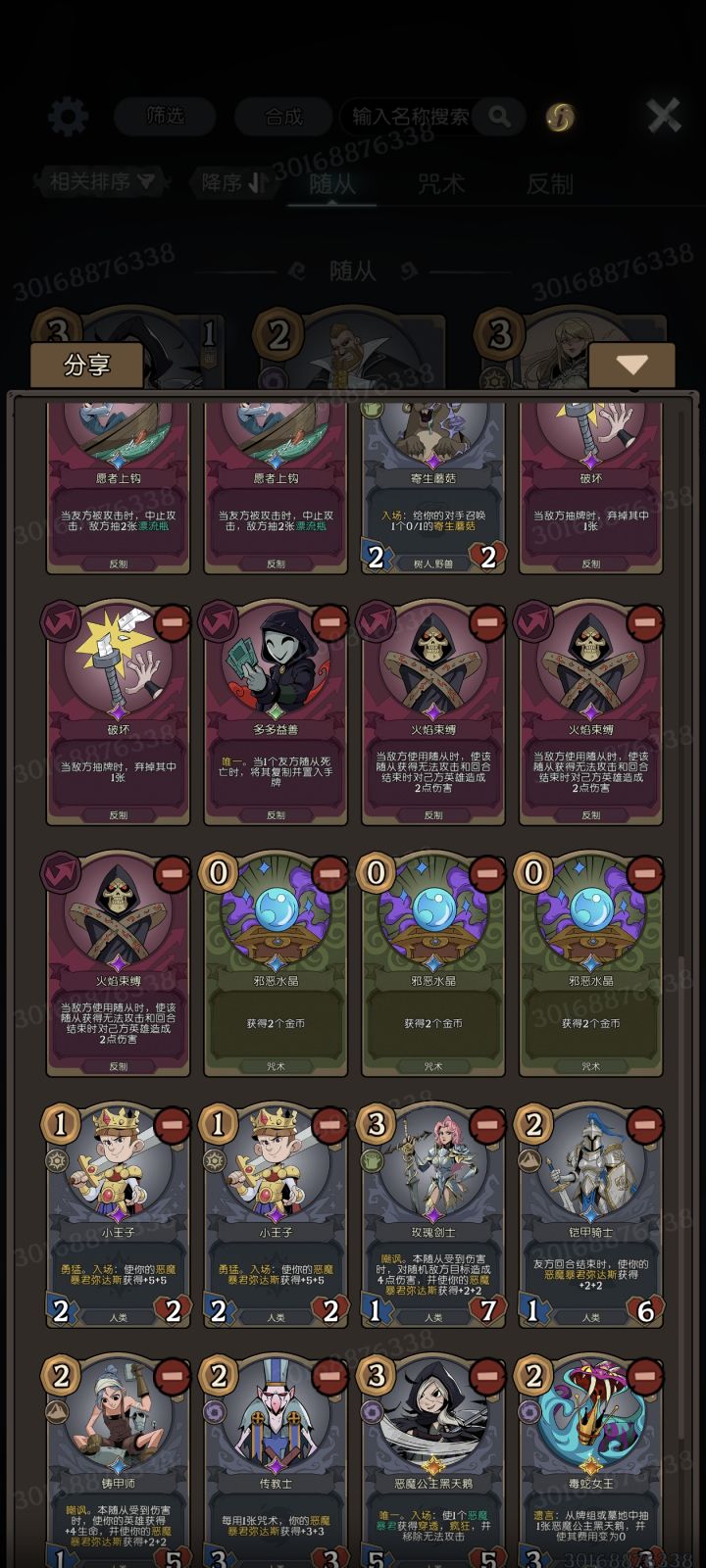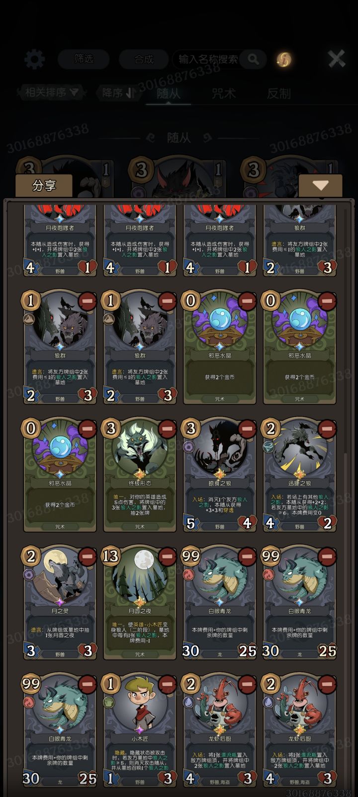 #月圆之夜ccgTapTap测试版 飞叶快刀 一测二测对比: 1、由于优化更改了反制牌触发的时机,导致无法做到灭世清场使飞叶快刀伤害全部打脸。 2、为弥补飞叶快刀伤害不足,使飞叶快刀伤害由4点→5点。 在二测中已经实测中毒目标计算双方全体。 流派玩法:狗运组件/过穿牌库 赢点一:3张飞叶快刀一个中毒目标打3×5,使角色承担多余伤害导致角色死亡获得胜利。 赢点二:过穿牌库白眼青龙踢脸。 构筑思路: