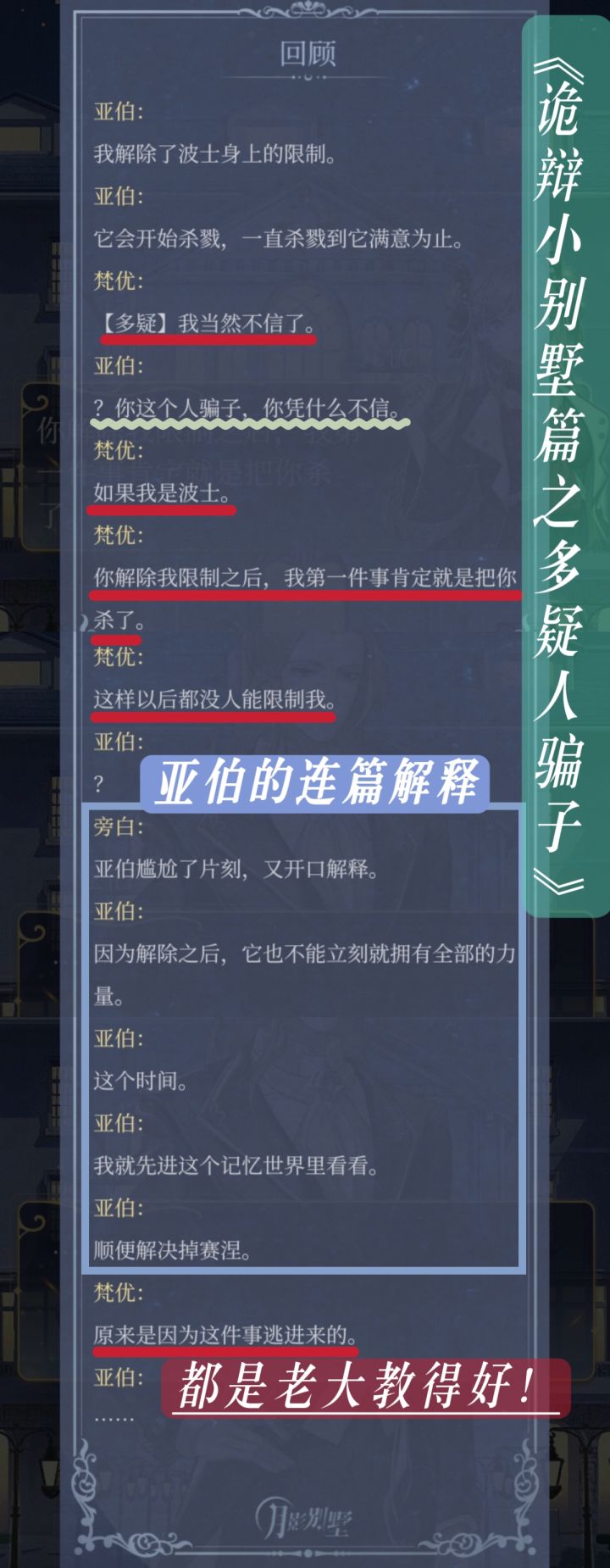 就这个临危不乱、胆大包天厉害了啊!前面胆战心惊那么久,生怕这个阴险狡诈的鬼半路把游戏暂停了。但直接承认后就……现在没有什么比让亚伯尴尬,更让某梵优开心的事了#月影别墅艾尔线 #月影别墅亚伯