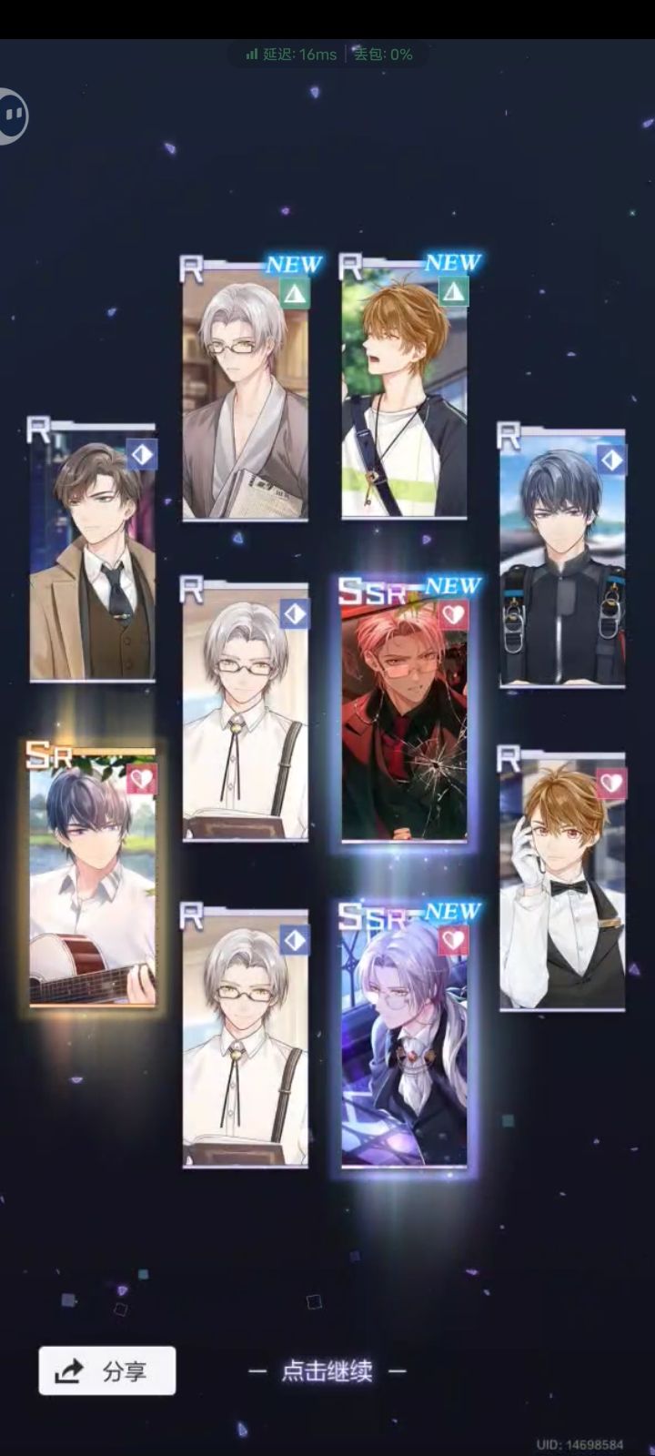 (ω)┏★━・━☆━・☆・━++┓ 祝莫弈生日快乐! ┗++━・━☆━・☆・━★┛就是没抽到新卡,一滴不剩了已经#未定事件簿 #未定事件簿莫弈 #莫弈 #莫弈生日快乐