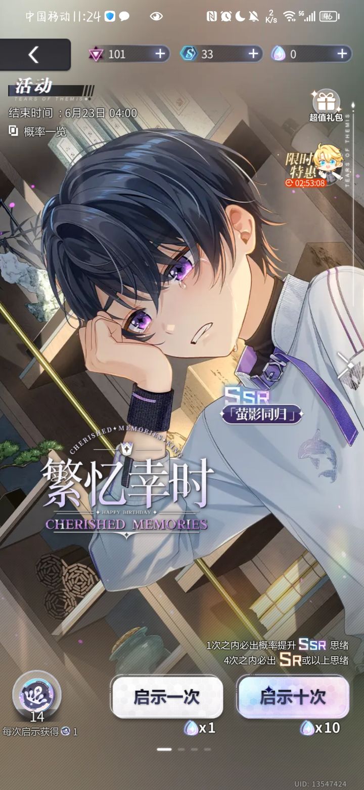 狠狠大保底才出,最后剩一抽晶片什么的都没了,氪了金才出的,陆景和你小子#未定事件簿陆景和生日卡