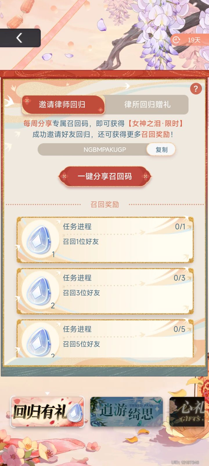 召回🐴:NG5444C44P可领2女神之泪(2抽)#江湖缘起S1攻略征集#未定事件簿#未定召回码