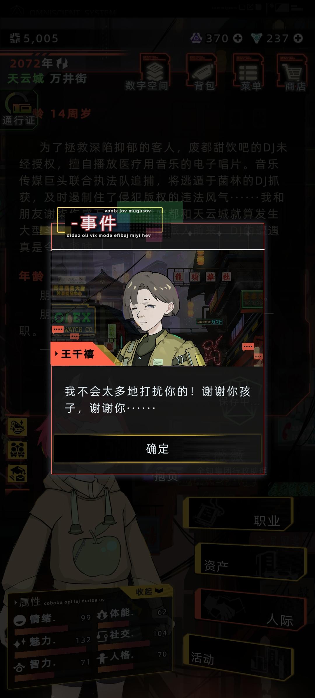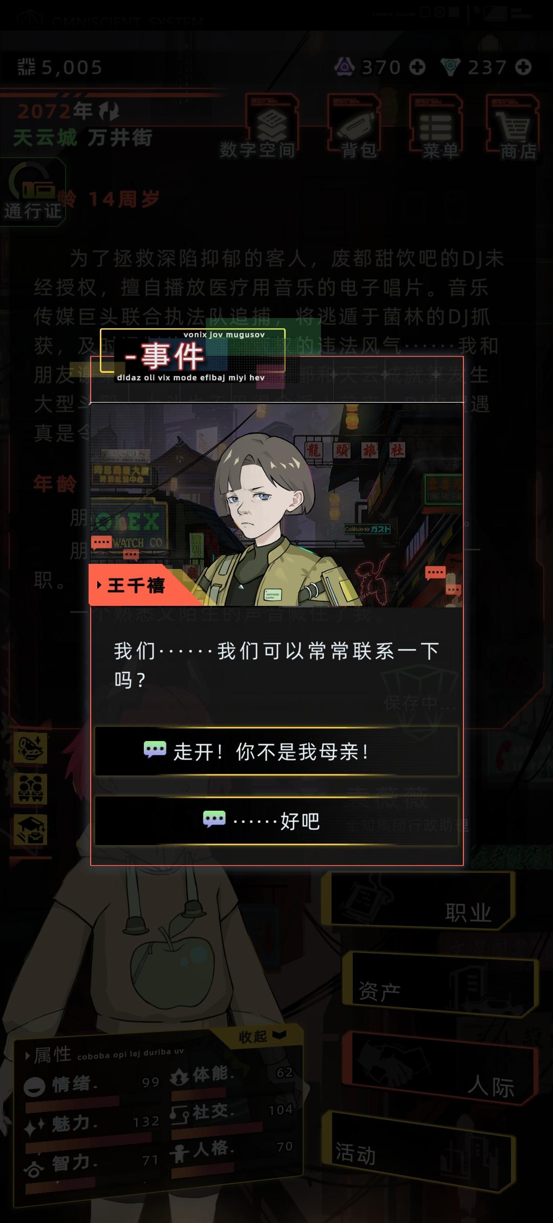 想刷💰,所以不想触发任意一个角色,等刷够了再认真玩认真攻略每一个角色,能关闭随机触发的都关了,但涂山瑶卢娜这些老角色没有触发道具的全是随机触发的,还有诺娃,可幻影事件也是随机的,还有现在活动期间青柳好像也会来,根本避不开#未来人生