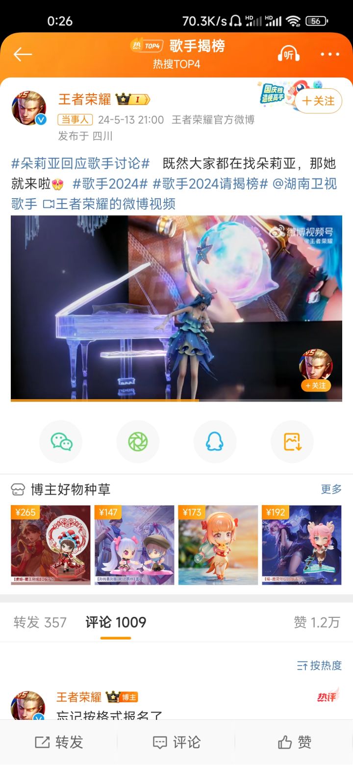 近期(短视频疯传)的瓜都吃了吗?近期我是歌手前两名被有实力的外国人包揽了第三名是 那英(据说有点紧张,失误)于是这届网友纷纷摇人(添乱)🤔难道有人摇到了王者?王者荣耀官微为朵莉亚发布了歌手2024请战视频#今天游戏圈发生了啥 #游戏资讯 #吃瓜爆料 #王者荣耀 #朵莉亚