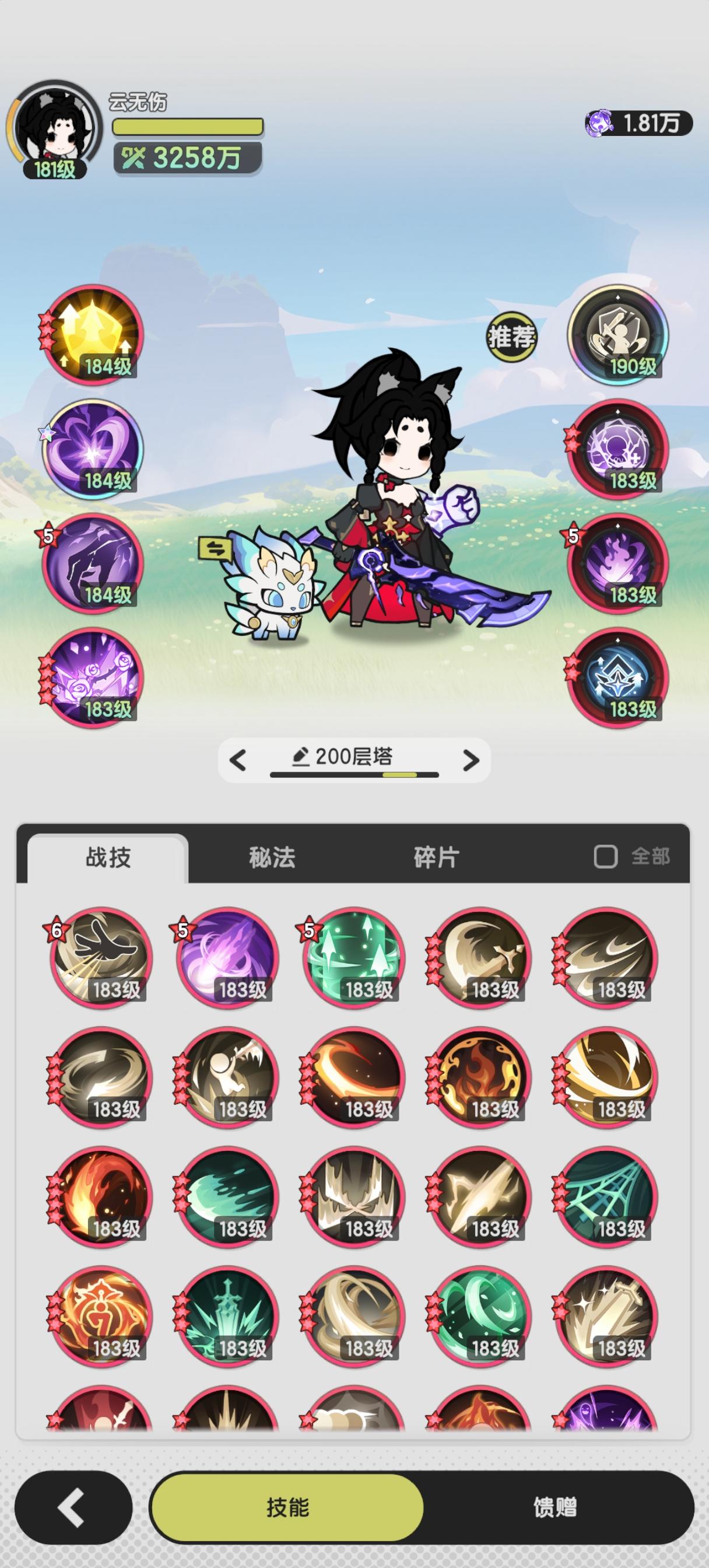 朋友们好。经过多次加反复尝试。通关了镇妖塔200层。此前尝试了各种网上给的技能搭配。现在感觉还是结合自身属性搭配最为合适。能够到200层的朋友,属性肯定没问题。那么来说说我的配技能技巧吧。无伤是在没有吃任何食物辅助下通关的,这样参考范围会大些。技能搭配放弃了速行,以弧光灵盾起手,走格挡击杀路线。主技能选择灭却,可以伤害,可以大跳,很好用。第二技能用了修罗,多次尝试后发现修罗给噬魂充能效果最