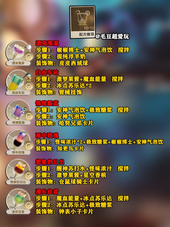 【V2.1攻略】「杯中逸事」全配方推导攻略+一个隐藏成就