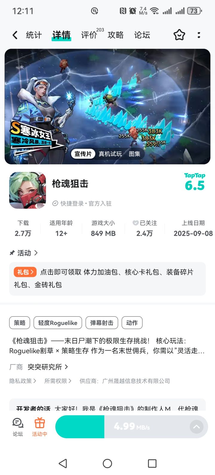 🏳🌈游戏类型:轻度roguelike、割草、生存、弹幕射击、休闲✨测试类型:限量不删档计费(资格有限,先到先得)🌤招募时间:2025/06/20~2025/06/21🌋测试平台:安卓、IOS🚤测试资格领取方式:点击帖子评论区上方的游戏链接【预约】,然后点击“游戏头像”进入游戏详情页,最后点击底部导航栏【报名测试】即可完成招募。💛感兴趣的小伙伴赶紧先行预约并报名参与测试吧!具体测试资格通