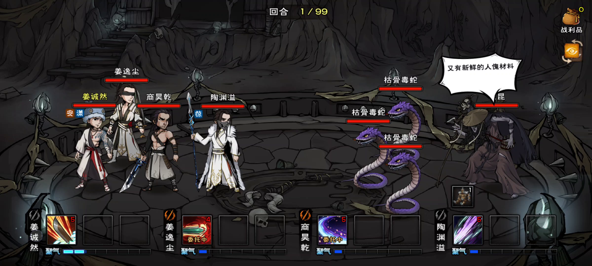 为了省点药脱装备换功法,结果嗑完以后忘记换回去了,我就说怎么姜这么脆[表情_泪目]#烟雨江湖 #枯骨门