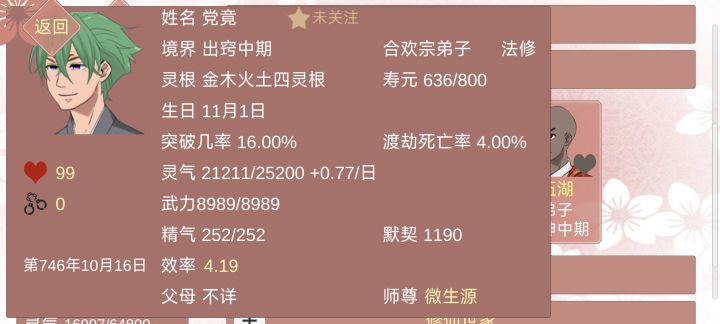 我这个档是因为认识了一个峰主,然后后面就认识了他,哇他长得真的很帅呀,但当时他就已经是大乘中期了,当时我就一直在给他送丹药,然后给他送避雷符,他其实跟我表白得很快,我当时不敢相信这么轻易就泡下他了,但是由于我为他喂的太多了,他一下就飙到后期了,然后我当时想刷魂契来的,一直挂在他身上,导致他直接飞升了!!!!啊啊啊啊啊啊啊啊啊啊啊我好难受,我真的很喜欢他😢 #某某宗女修修炼手札日常 #某某宗女修修炼