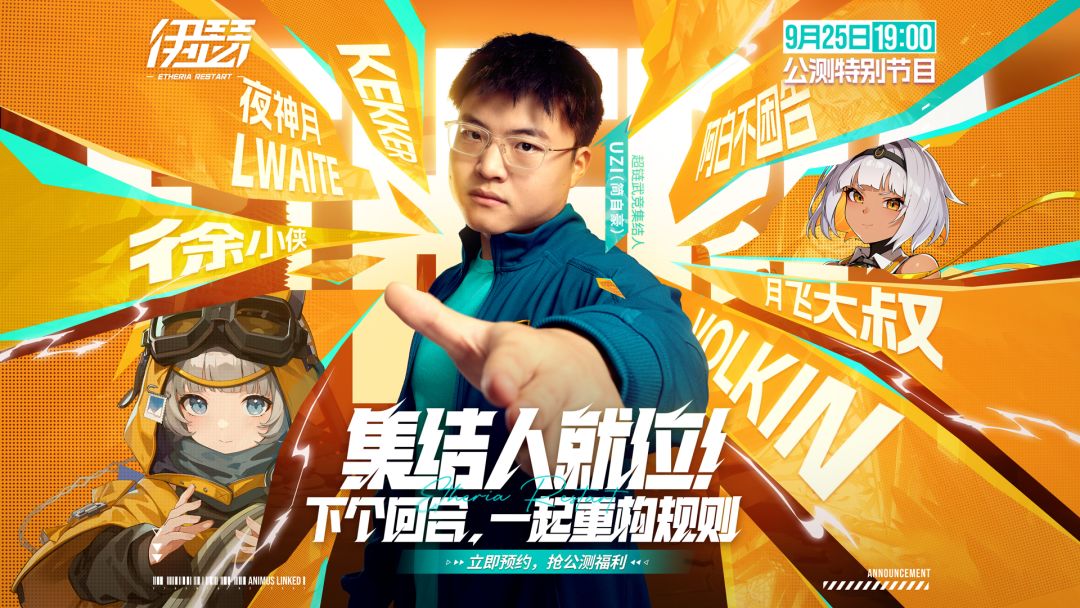 集结人已就位,立即预约,9月25日,伊瑟公测之夜——超链武竞,巅峰对决! 下个回合,一起重构规则! #伊瑟 #伊瑟公测定档0925 #UZI #柯洁 #小孩 #曾卓君