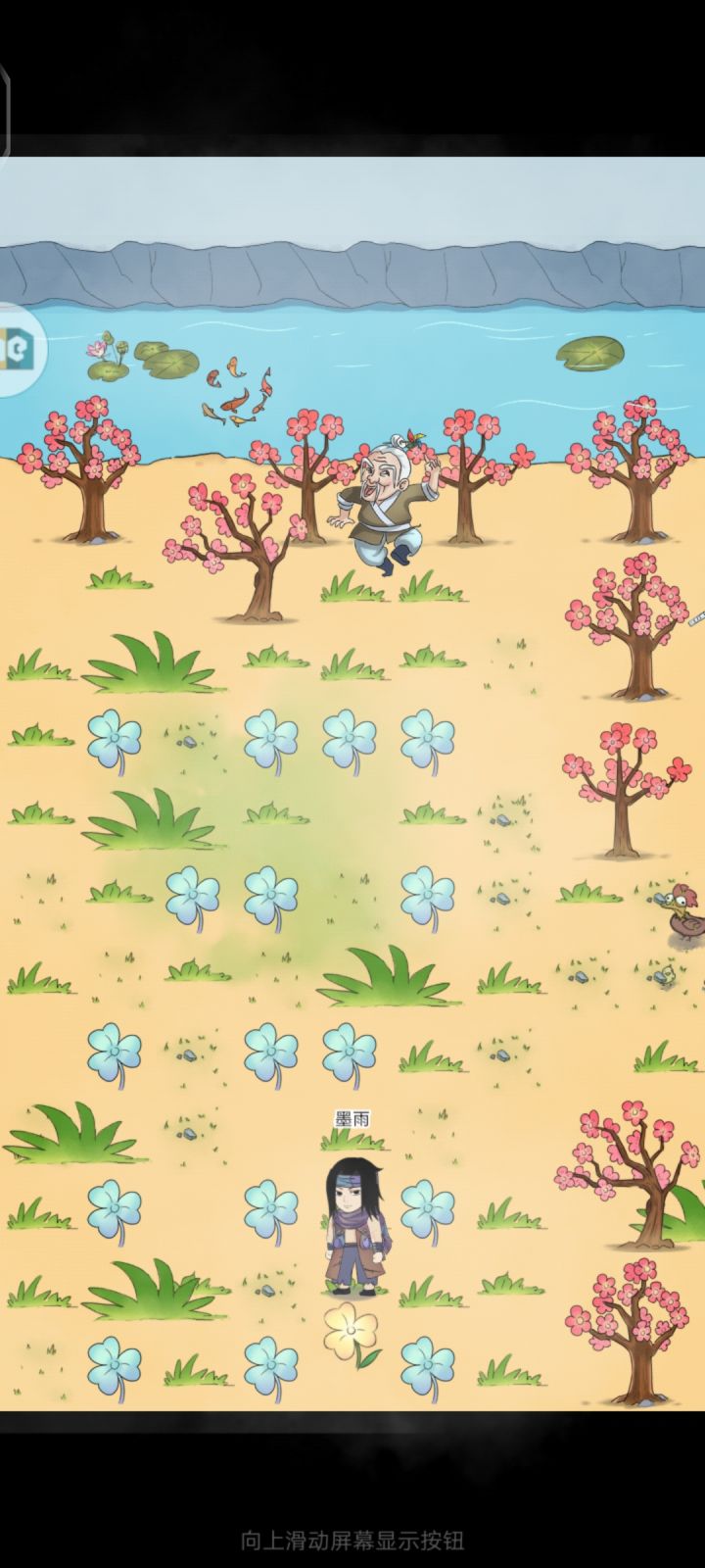 1: 进入桃源后与园丁对话(套话),进入战斗后会同意我们进入桃源河道。2: 与王娴对话,会让我们找一片四叶草(地图左下角)找到后再次对话,拿出棋盘(选择壹会进入战斗,选择贰/叁会+10点好感度)3: 草地左上方躲着一位老顽童,会找你钓鱼(选择不钓鱼会进入战斗,选择钓鱼+10点好感度)注意钓鱼需要2个糖葫芦+2条草鱼+1条鲤鱼+1块蚌肉。4: 进入大桃屋,与商人陈献对话。(选择滴酒不沾会进入战