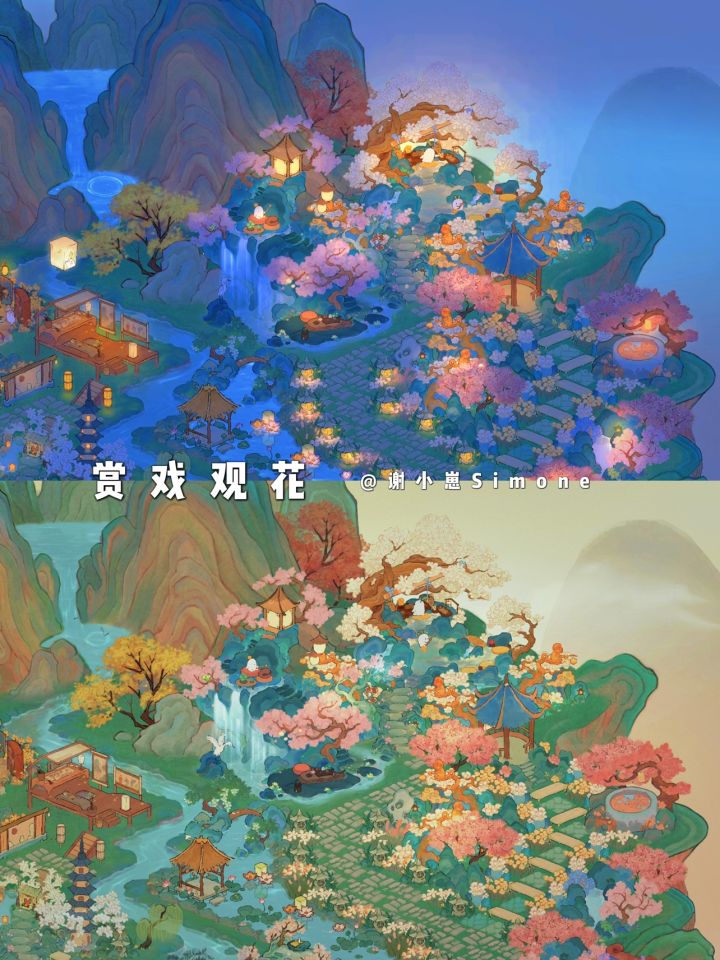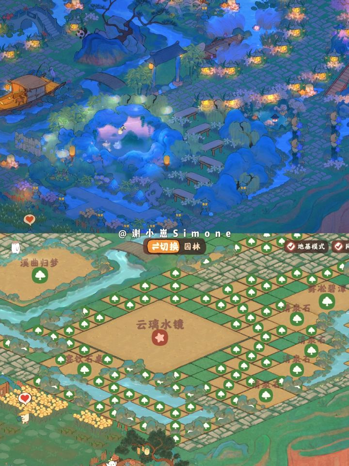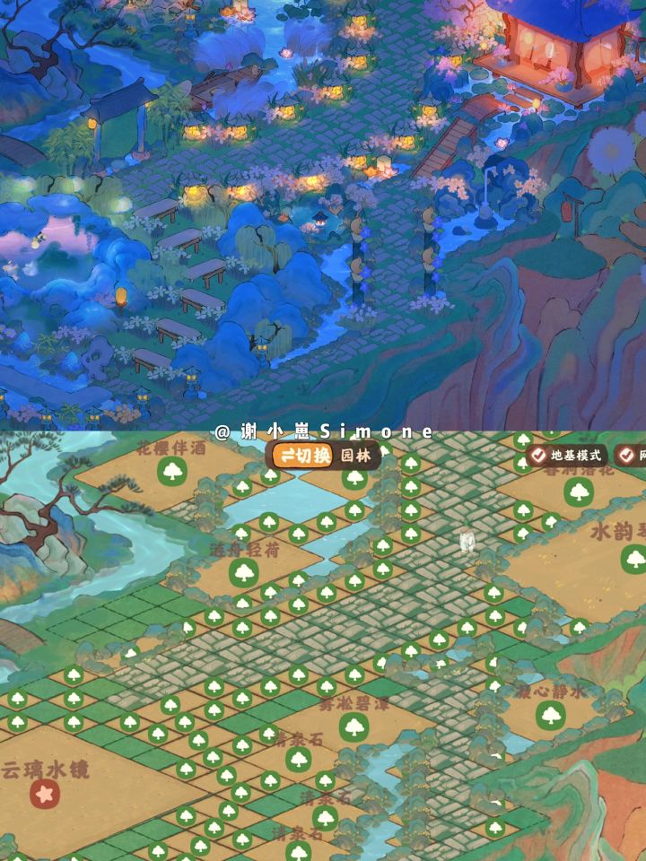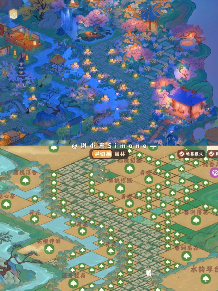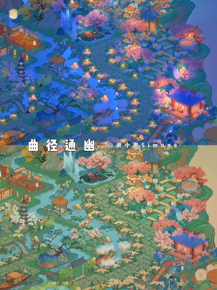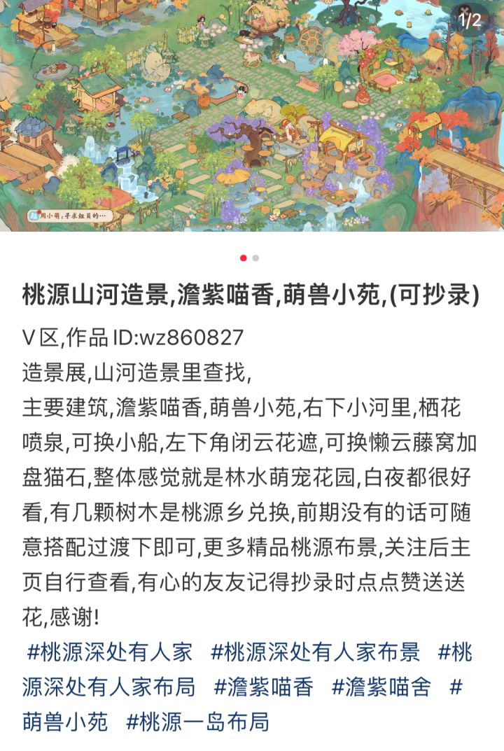 「山水园林」二岛右侧无缝连接:本篇是二岛右侧布局,和之前发过的左侧布局完美连接。整体布局的思路是主干道清晰,每个小区域内有起有伏,山水花草重叠但不杂乱。 截图的清晰度不够,实景效果非常好看。如果追求一岛同色系,可以搜我发过的「灵隐山庄」的布局,灵隐山庄一岛和山水园林二岛是一样的风格。 断断续续肝了两周,短时间内不想再搞全岛了,等我把仙女湖开完再整全岛新风格叭~#桃源深处有人家#桃源深处有人家装修