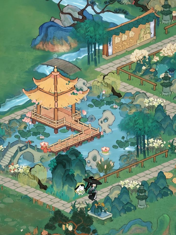 桃源丨「蓬莱仙岛 十 月牙湾」丨二岛墨踪侠隐布局•醉墨淋漓清竹烟,踏水无痕侠客隐。#桃源周年庆#桃源深处有人家装修#萝萝周年攻略#桃源深处有人家二岛布局#桃源深处有人家