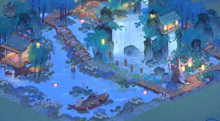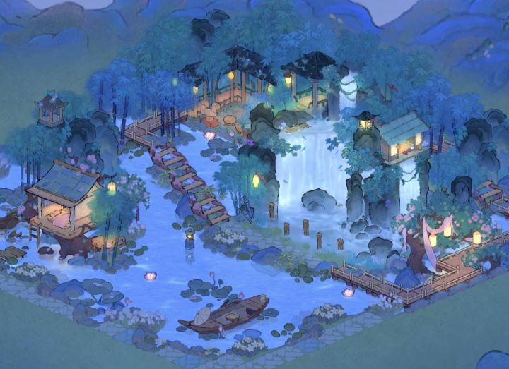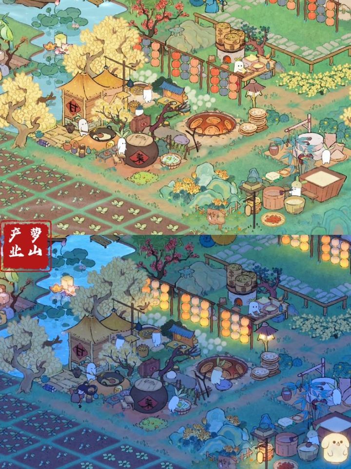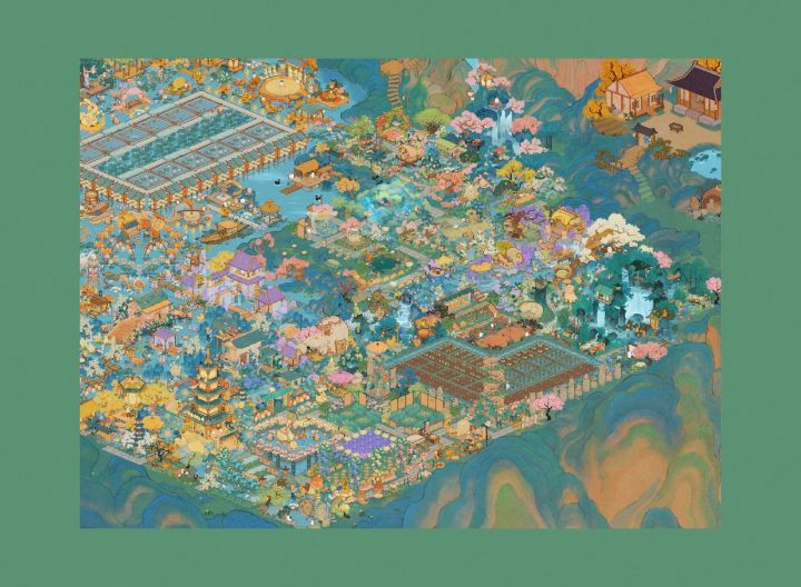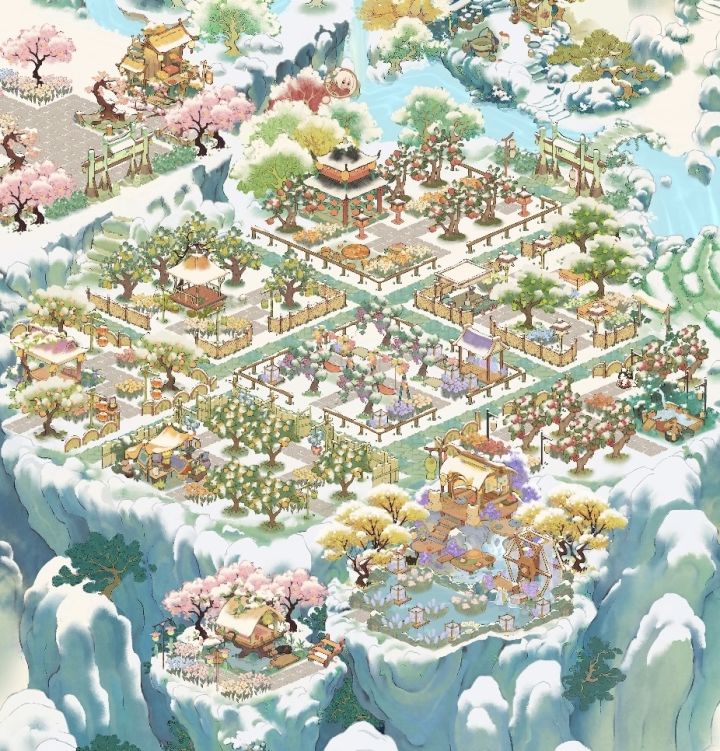 17级的小小布景展示出门就是庭院水景,左边是寒梅驿站,过桥以后来到花灯过道,产业区分成两个,产业区是生产加工➕种时长短的作物,田间鱼塘区种一些时长比较长的作物,还有专门的钓鱼区。最后是萝山全景!可惜抽到的建筑和能开的地太少了,真的好想快点开更多的地!!!#桃源深处有人家#桃源深处有人家布局展示