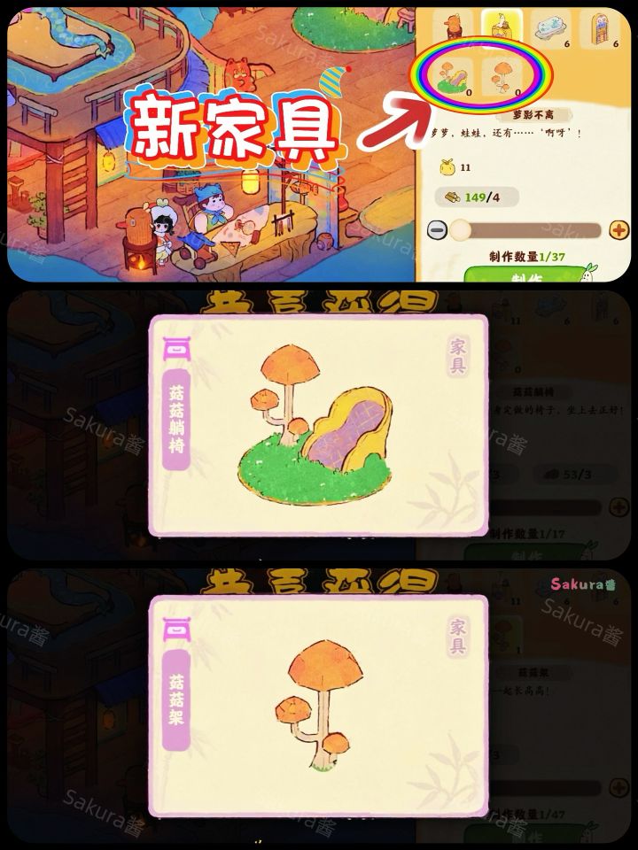 桃源 • 阿鲁的隐屋好感度满级(7级)不仅可以领可互动的乙级建筑比心还可以制作新的室内家具看我的而且不用花金币哦!「菇菇躺椅」和「菇菇灯」开心躺椅是扶光的专座猫咪举手灯是蘑菇氛围灯详情请看大图萝比心#桃源深处有人家 #桃源宫烟故梦 #桃源紫禁攻略