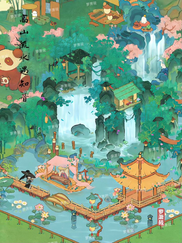 🐼来「熊猫谷」修行,有滚滚们陪伴不孤单哦!比心布局包含四个甲,比较实用的一个布局。比心P1是白石路,动线比较清晰;P2是枫叶路,与景色适配度比较高;可根据喜好布局。比心造景编号:wz610040比心主要建筑:墨踪侠隐 水云静栖 灯竹萌趣 菩提一页藕花风亭 芰荷珠龙 蹴鞠场 竹梦回廊 桴梦逐音 淡墨石 花梯 水栈道 荷叶灯架 出水芙蓉#桃源深处有人家