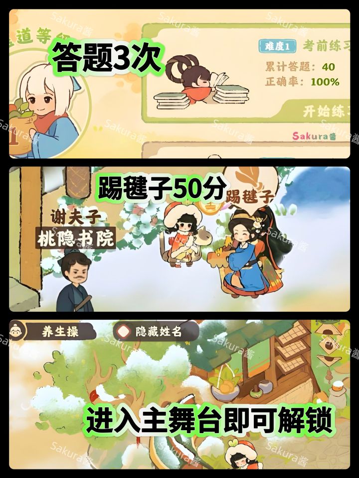 每关20题里抽10题回答,可以先做模拟考试看看都有什么题目(得分无所谓)。后续关卡答案持续更新,第一关只有10题是因为没做模拟考。。#桃源深处有人家 #桃源颐养四时