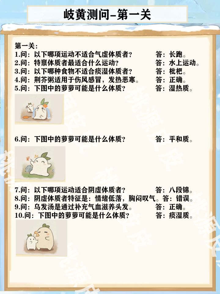 【更新中】岐黄测问各关答案