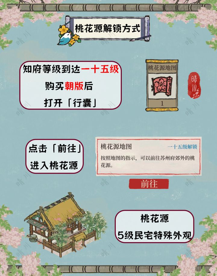 “林尽水源,便得一山,山有小口,仿佛若有光。便舍船,从口入。初极狭,才通人。复行数十步,豁然开朗”——陶渊明《桃花源记》桃花源开地物资统计可以直达图3和图4,各位知府大人可以通过码头先行准备向桃花源运送开地所需物资。#江南百景图 #桃花源 #江南百景图攻略