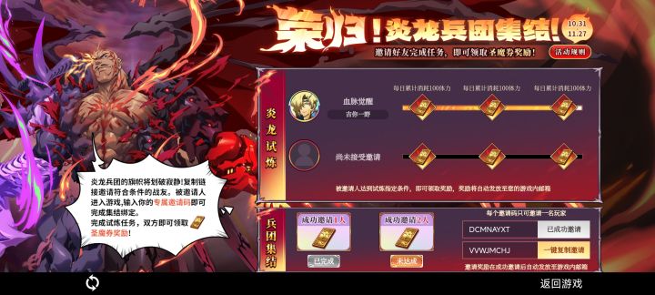 VVWJMCHJ#梦幻模拟战兑换码 #梦幻模拟战手游 猛将归来!巴尔加斯浴火重生!全新LLR英雄炎龙破灭者震撼来袭,万圣节主题活动开启,超多福利等你来拿!点击链接进入梦幻模拟战,响应炎龙团长的号召,领取圣魔券奖励吧!活动链接https://www.zlongame.com/next/actv/27/2024/recall1031/share/index.html?roleName=%E6%88