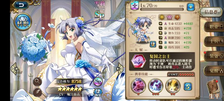 1、SP雪梨(评价:T0,人权卡,强烈建议开SP)这个其实不用多少说,绝对的人权,强大的移动力和恢复力,身处光辉、公主两大强势阵营,无论你玩什么阵营都推荐第一优先级开她。后期小怪本基本可单走一路,boss本契合主流的索尔、巴德尔、奥丁三个神契,基本完美的近战打手。#梦幻模拟战整活大赛
