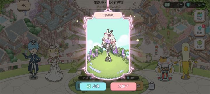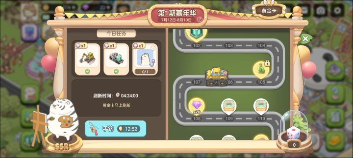 1,一定要多做漂流瓶!偏后期金币的主要来源就是漂流瓶!图1绿色是环境值,图2蓝色是繁荣度,注意任务需求2,纯靠钻石是不能抽到ssr的,纯白嫖党,但是每天免费的豪华大巴可以,已经两只了,还升到了3级,有了伴侣(碎碎念,人家都有对象了,还即将有宝宝了……)3,嘉年华,动物头像代表目标,右下角的图标代表活动,这就是让我用白熊钓鱼。(然而我的白熊一直在开荒……毕竟专业建设值超标4,单抽,脸哇紫哇紫#梦幻的城攻略大师