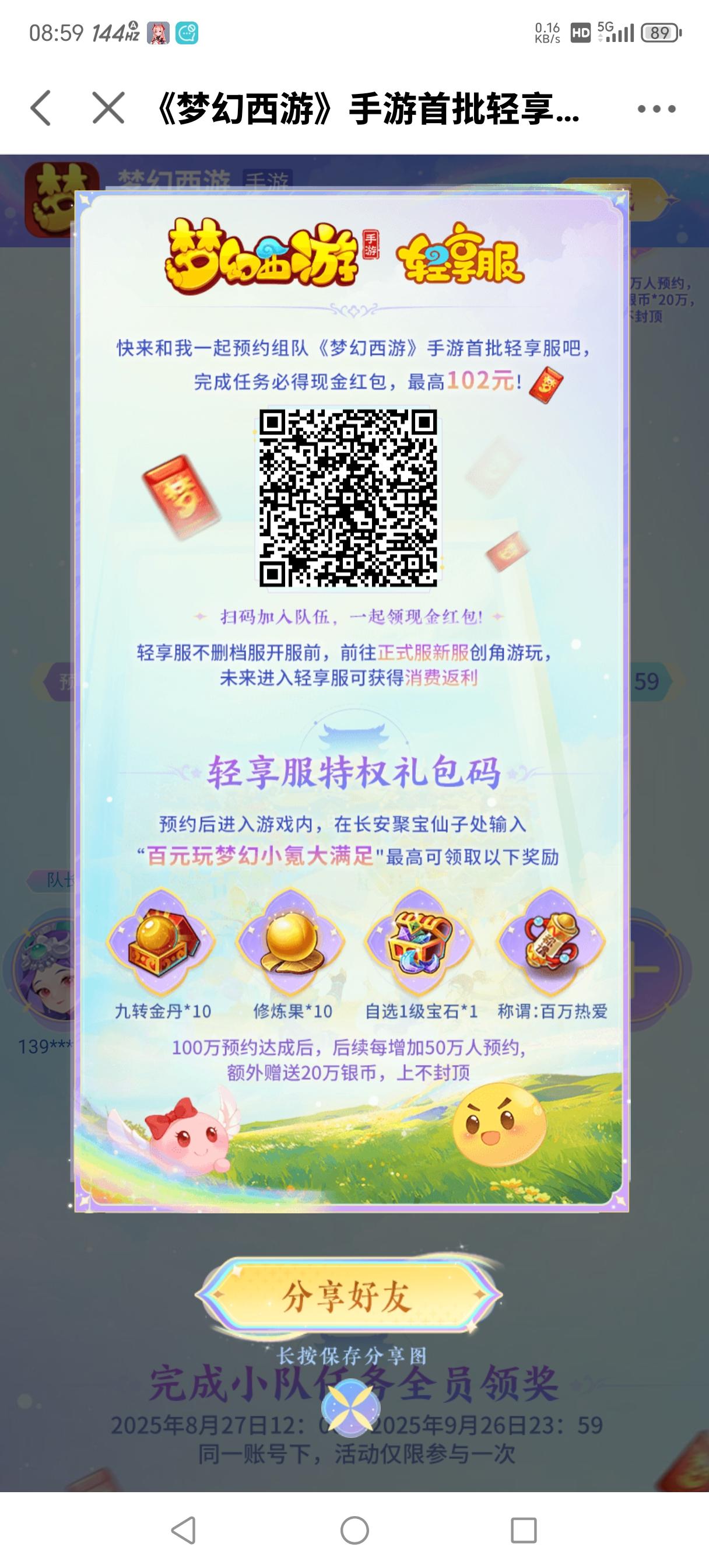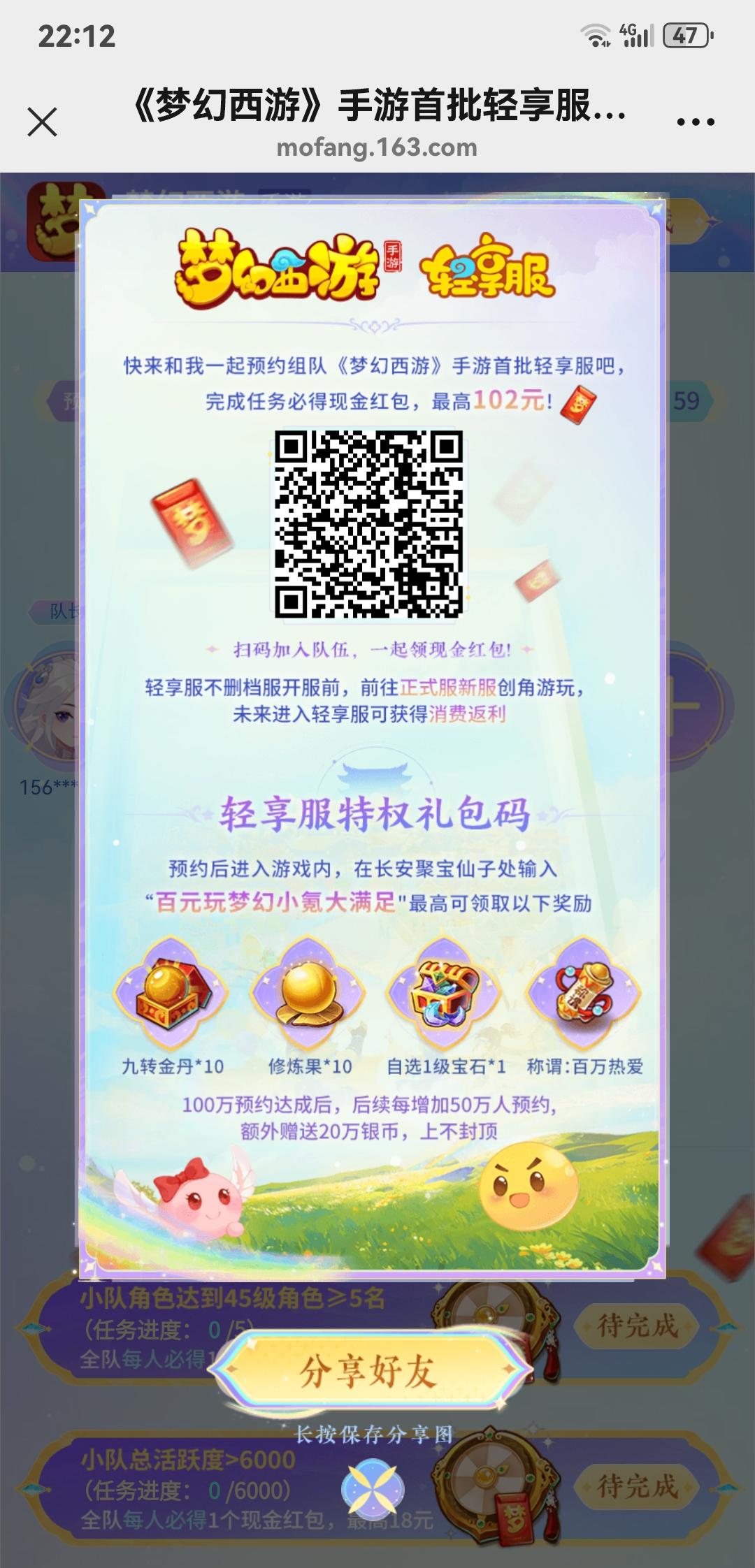 139****1656邀请你加入TA的队伍 《梦幻西游》手游首批轻享服预约开启!组队集结,最高102红包等你来拿 https://mf.163.com/s/bVcIwmCT#梦幻西游 #梦幻西游网页版 #梦幻西游手