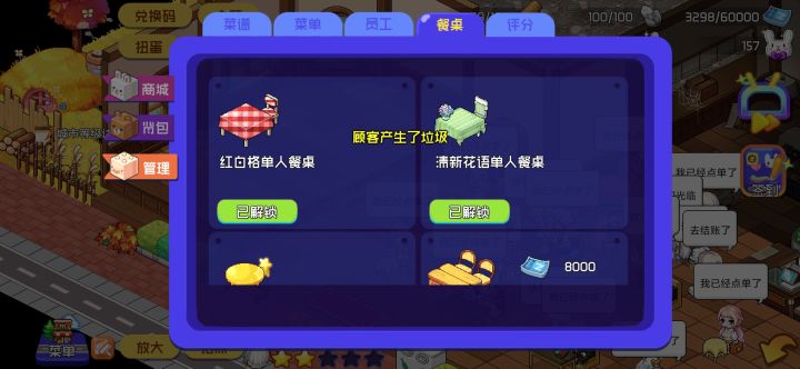 解锁了三个桌子但都没办法放出来,背包也没有,点它就显示需要先解锁前面的桌子#梦想时光城