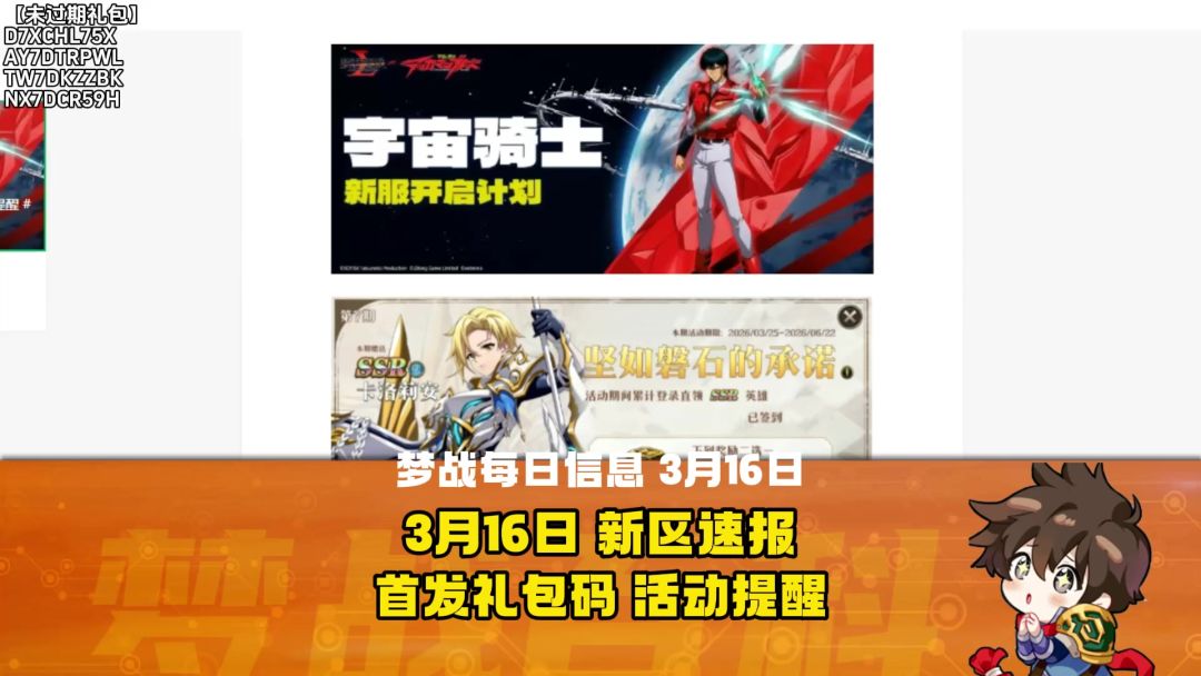 【每日梦战】3月16日 新区速报 首发礼包码 活动提醒