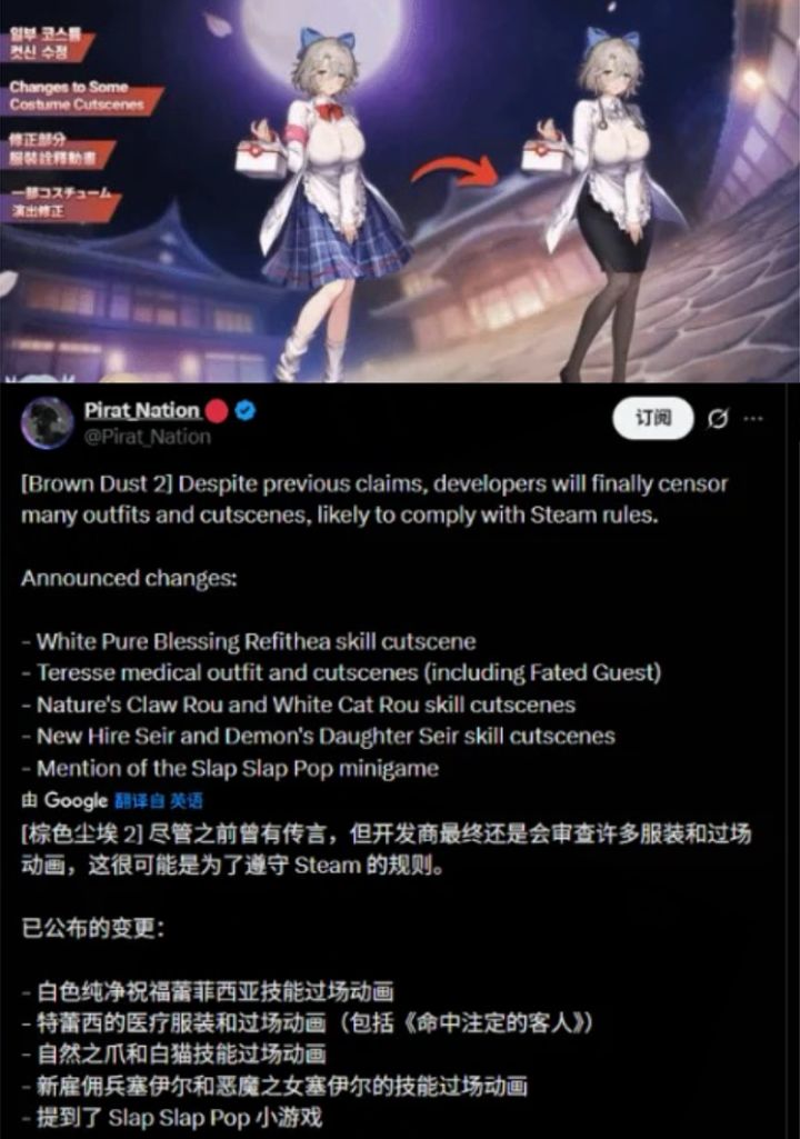 韩国RPG《棕色尘埃2》在近期直播活动中官宣重磅动态,将对9位角色的外观进行优化调整。官方表示,此举是为了在全球各国及各大平台维持稳定服务质量,同时以更健康的方式呈现角色原本魅力,涉及萝莉以及学生系角色基本都要进行调整,以及部分剧情也会大改。这一调整引发外界诸多猜测,推主@Pirat_Nation直言,这或许暗示游戏正在为重返Steam平台做准备。据悉,该游戏去年12月曾从Steam下架,官方此