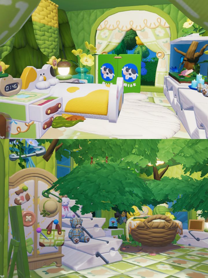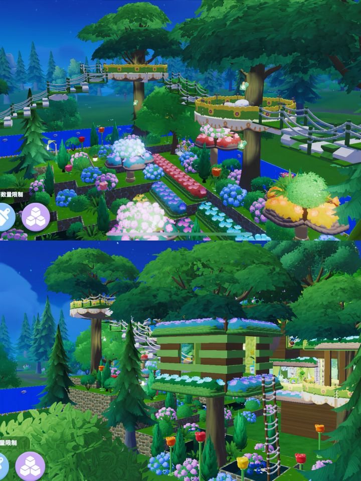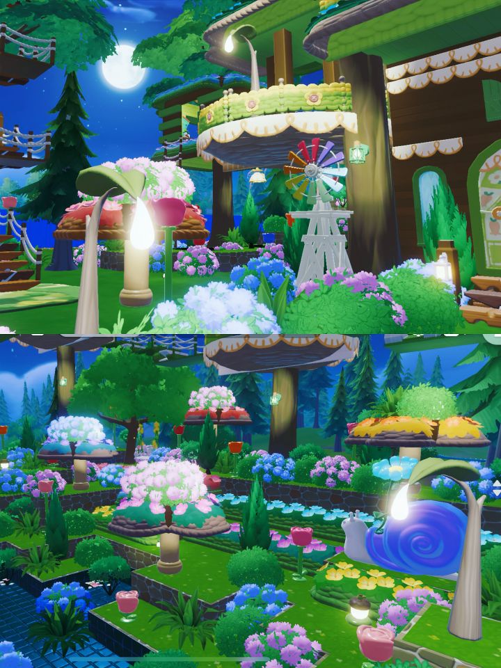 💐薰衣草可以直接贴在地板上倒置,加一两簇其他的花卉,空隙处再补上爬山虎。方柱和平板都是积木染色。晚上灯光会比较明显,花架下面按照自己喜好布置即可。 💐如果要在下面铺地板,需要提前铺一层。后期铺地板方法是框选花架组合移动到地板上。 #米姆米姆哈公测 #米姆陪你云蹦迪 #米姆陪你总有惊喜 #米姆陪你勇往直前 #森系