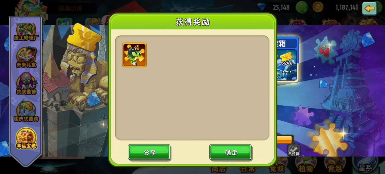 #植物大战僵尸2十二周年 幸运宝臧平时开的箱子都是破破烂烂的垃圾,也不知道幸运在哪里了,现在给我搞怎么一出还有那个超Z点进去一看好家伙4千多天!!!咋滴你是要修仙了是吧。